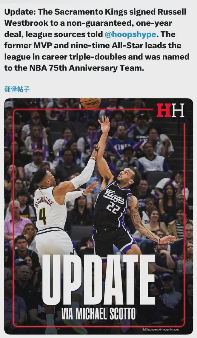 值得一提的是,據(jù)名記Scotto報(bào)道,威少與國王簽下的只是一份無保障一年價(jià)值360萬美元的合同......意味著國王可以隨時(shí)裁掉威少,并且無需支付任何費(fèi)用。